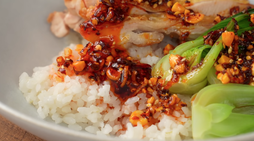 - Drizzle chili crisp (oil + crunchy bits) generously on top.