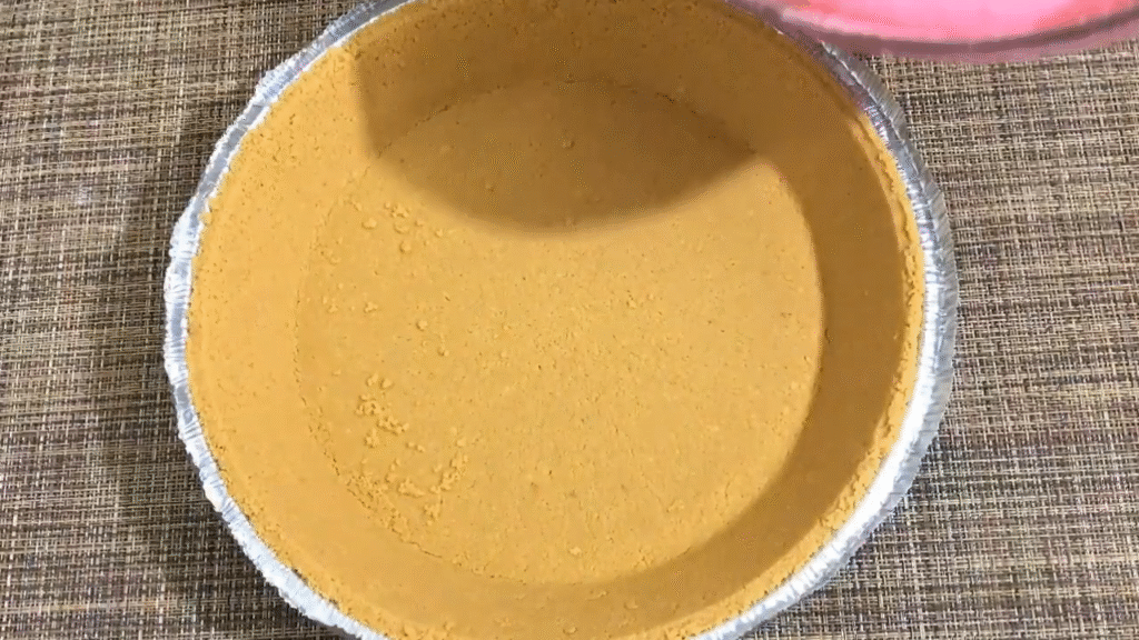 Mix graham cracker crumbs, sugar, and melted butter. Press into the bottom of a pie dish and chill it in the fridge while you make the filling.