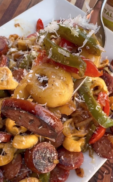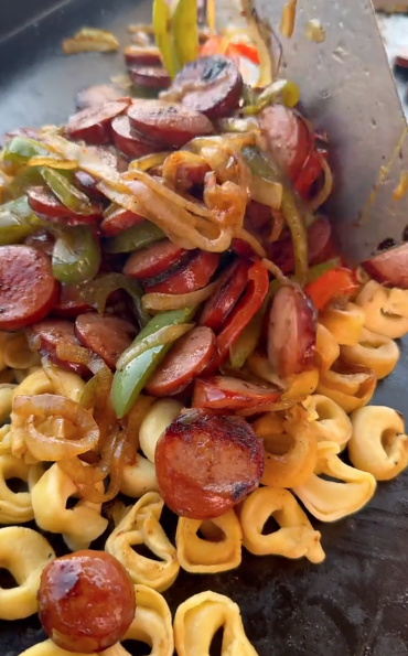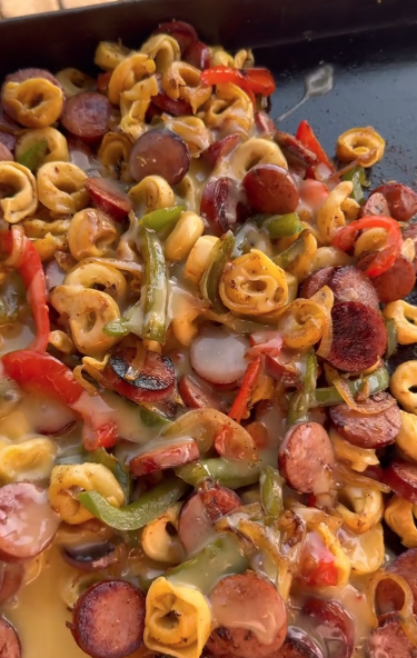 The result? A bowl of cheesy tortellini covered in a rich, creamy sauce with juicy sausage and a little kick of flavor.