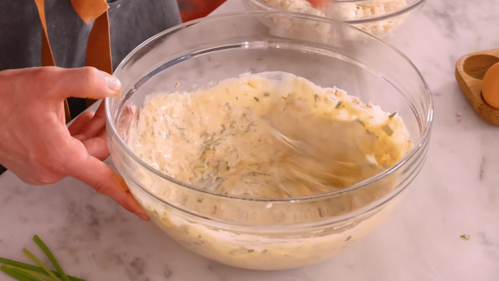 Gently fold in the crab meat and breadcrumbs. Don’t overmix—keep it light so the crab flavor shines through. You want chunks of crab, not mush.
