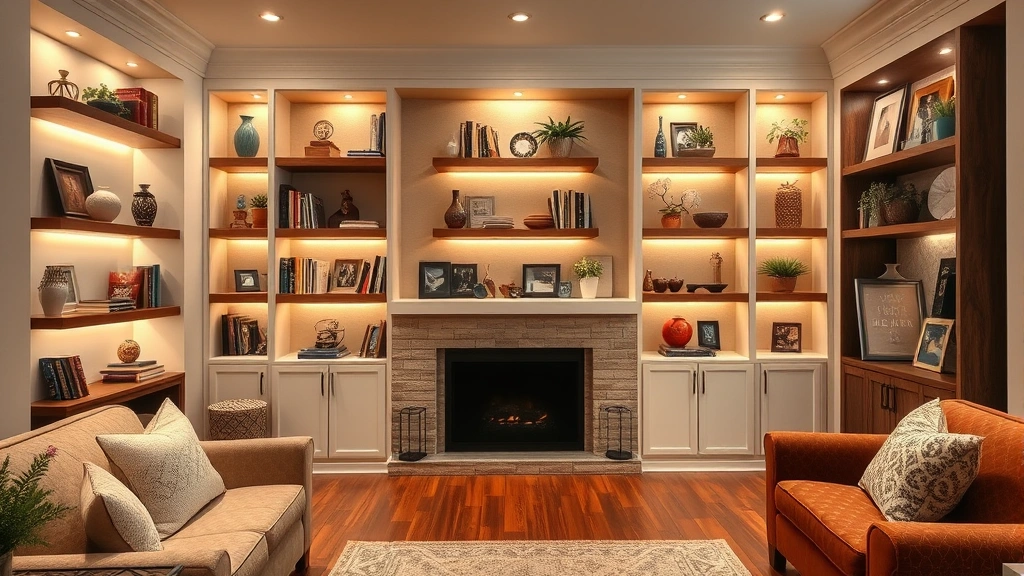 Integrating lighting into your built-in shelves can create a dramatic effect in your living room. LED strip lights or spotlights can highlight your favorite decor pieces or books, adding depth and interest.