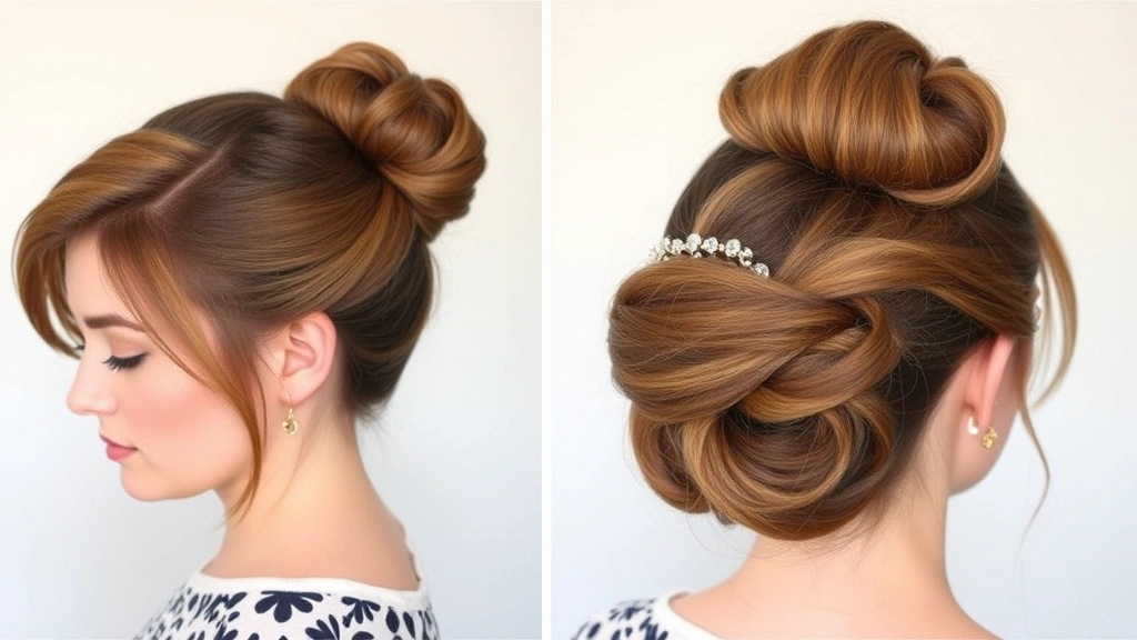 This hairstyle involves twisting the hair upwards and tucking it into a secure roll, creating an elegant silhouette ideal for weddings or formal events.