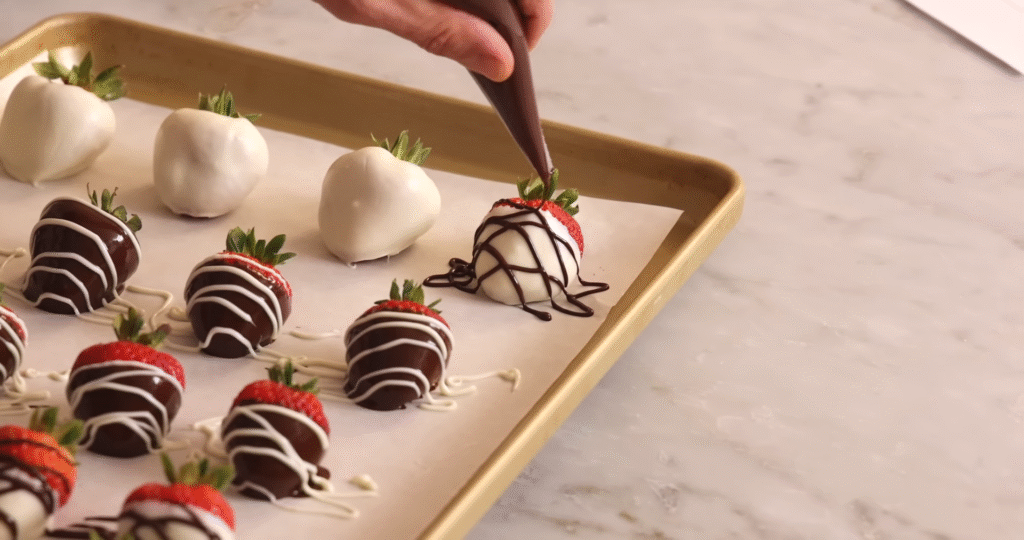Football strawberries are just fresh strawberries dipped in melted chocolate and decorated with white icing to look like footballs. They’re simple, but they look impressive. Imagine a tray of shiny, chocolate-covered strawberries, each one with laces like a real football—so fun for sports parties!