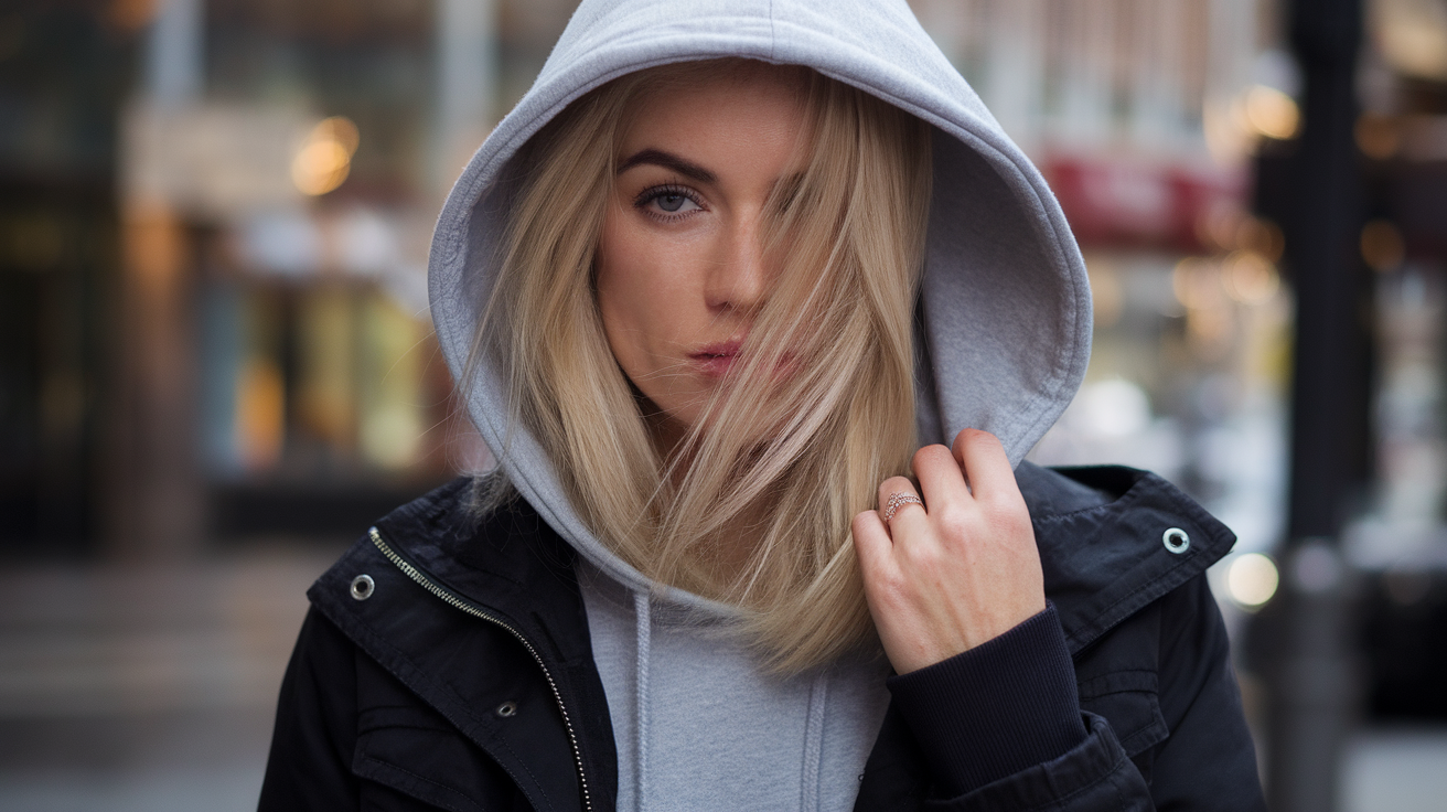 Give your hoodie look a trendy twist with a top knot hairstyle. This high bun is not only stylish but also practical, keeping your hair out of your face. Just gather your hair at the top of your head and twist it into a bun, securing it with a hair tie. It’s a fun and playful hairstyle that adds a touch of personality to your outfit.