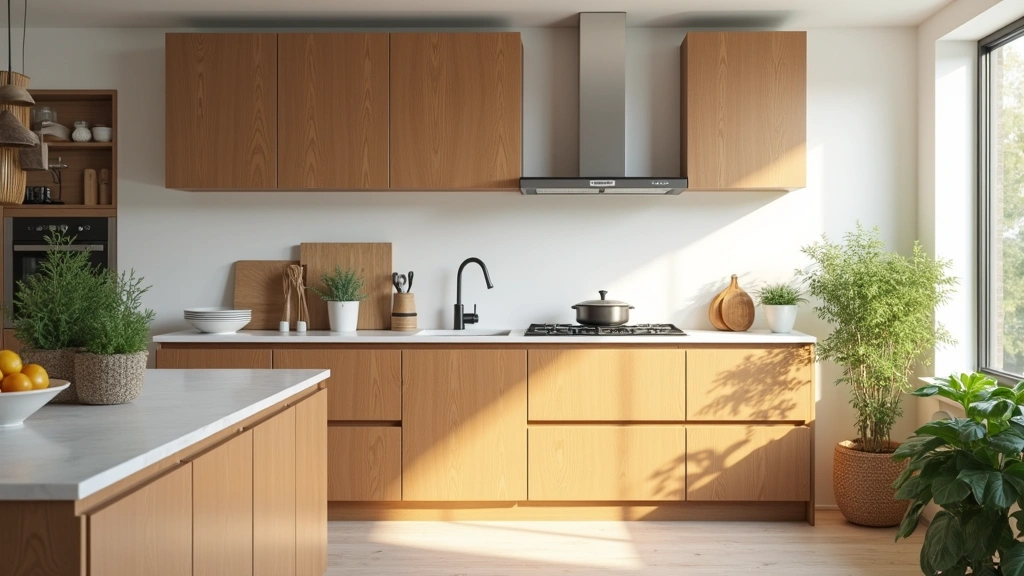 Pair with white countertops and light wood accents for a harmonious look, and consider adding greenery for a fresh vibe.