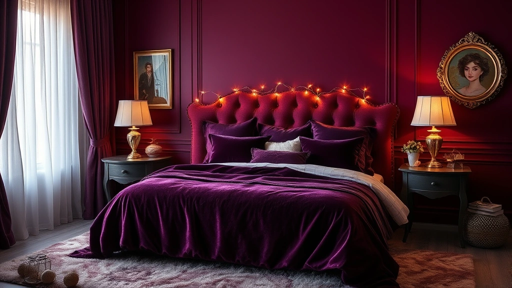 This combination not only adds depth to the room but also evokes a sense of mystery and allure. Accent walls can be painted in a dramatic shade or covered with patterned wallpaper, creating a perfect backdrop for romantic decor elements.