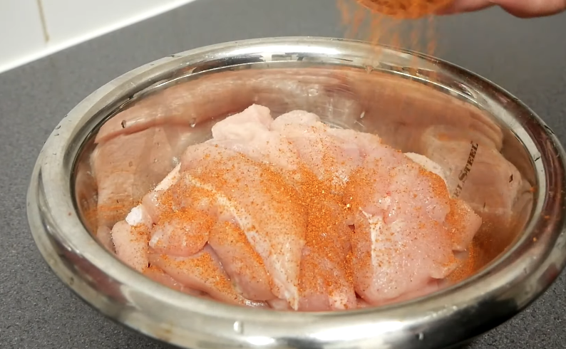 Now comes the fun part. Mix flour with paprika, cayenne, garlic powder, and onion powder. Dip the chicken in flour, then egg, then flour again. This double coating makes the chicken extra crunchy. Don’t skip this step—it’s the secret to that perfect crisp.
