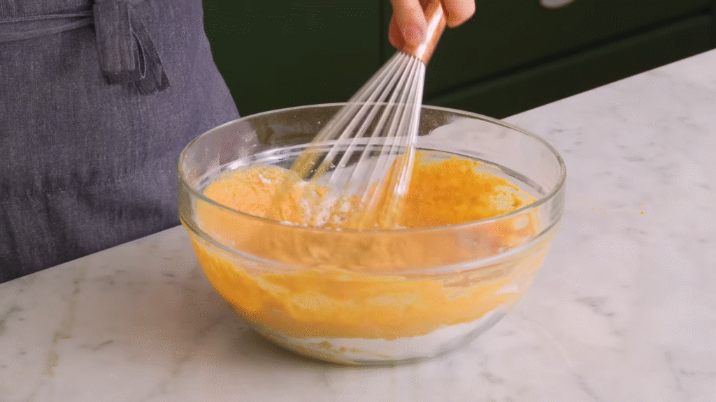 In another bowl, whisk pumpkin puree, eggs, milk, melted butter (or oil), and vanilla extract until smooth.
