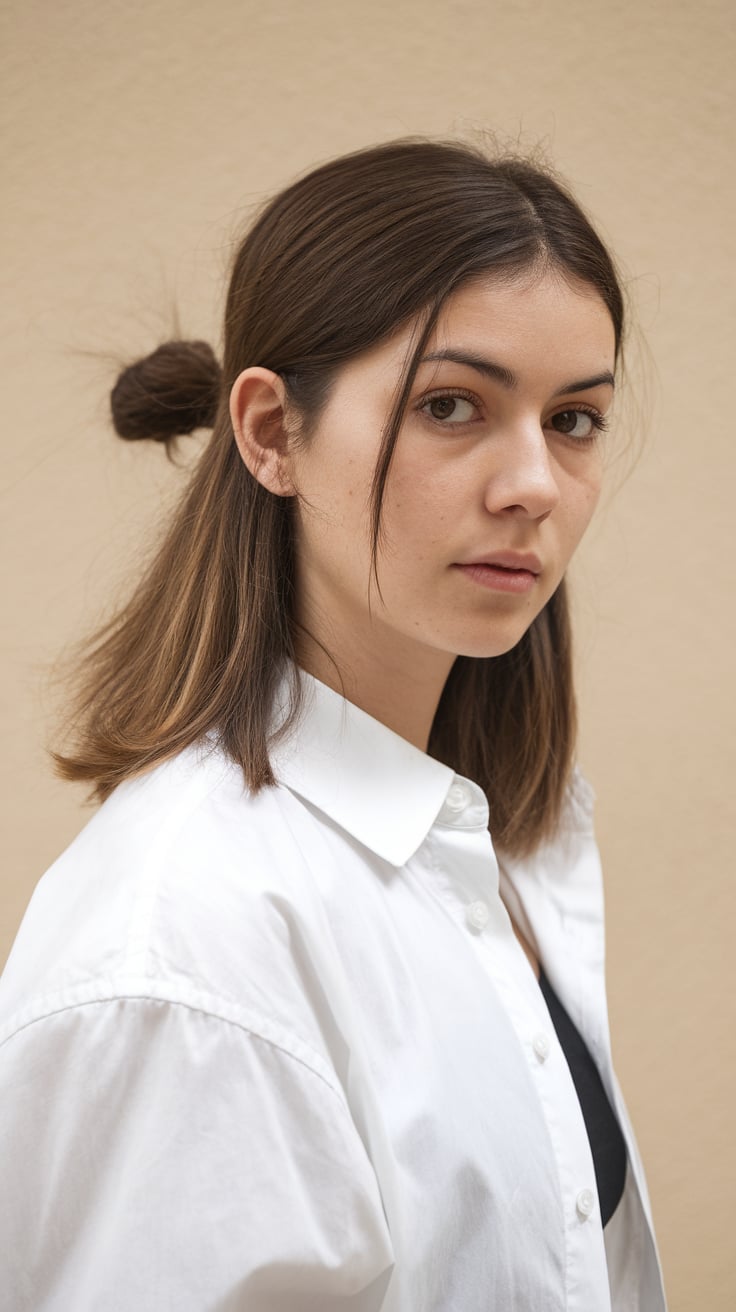 You can also pull out a few strands of hair to frame your face for a more relaxed vibe.