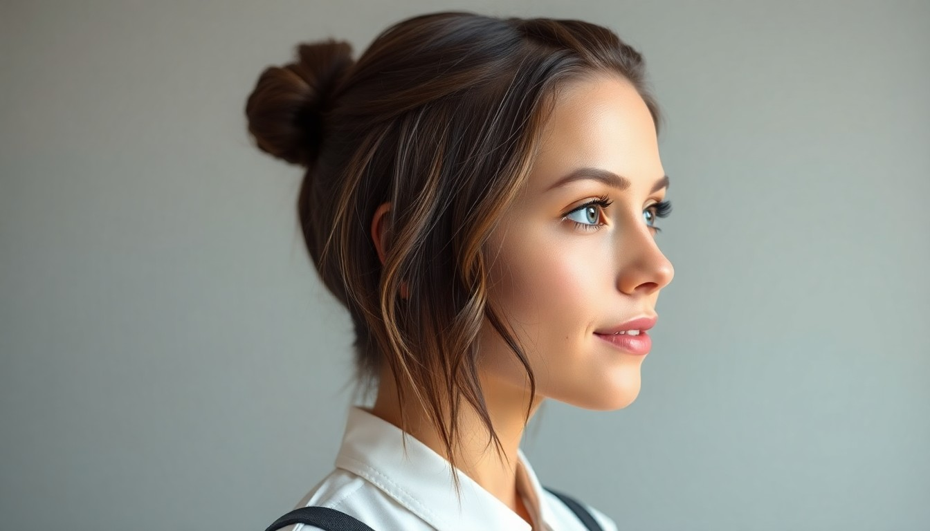 The messy bun is a go-to hairstyle for busy school days. Simply gather your hair into a high ponytail, twist it into a bun, and pull out some strands to create a relaxed and effortless look.