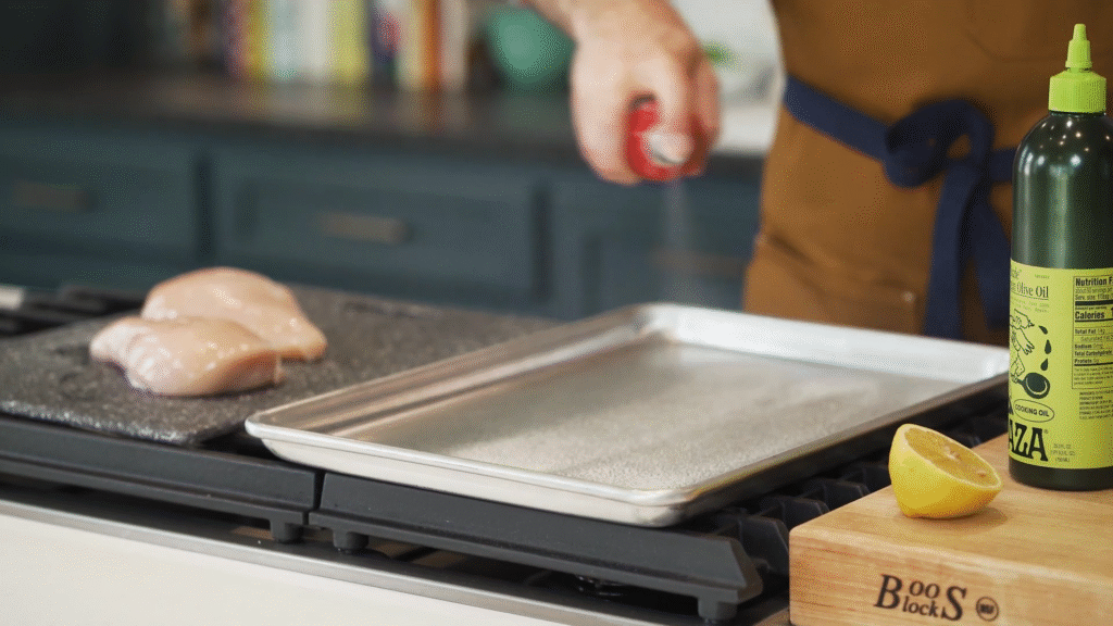 Line a large baking sheet with parchment paper or foil for easy cleanup. A little olive oil drizzle makes sure nothing sticks.