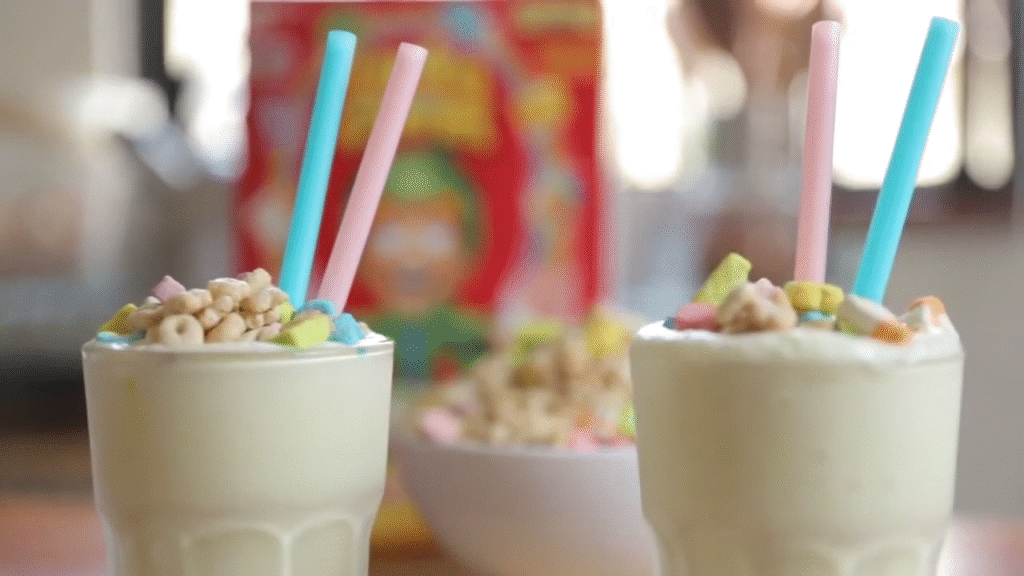 Blend vanilla ice cream with Lucky Charms cereal. Top with whipped cream and extra marshmallows—it’s like a milkshake and cereal combined.