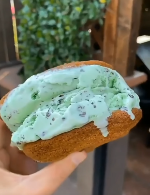 Green mint ice cream sandwiched between two soft chocolate cookies is a treat no one will say no to. You can roll the edges in green sprinkles for extra festiveness.