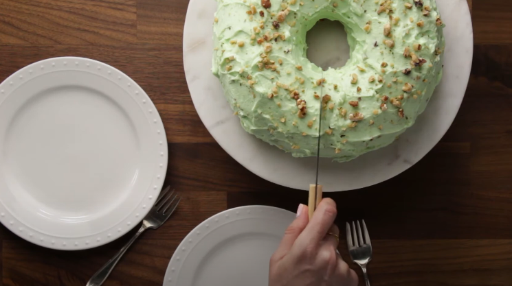This green cake is moist, light, and full of flavor. Pistachio pudding mix gives it the color and the taste, making it perfect for St. Patrick’s Day.