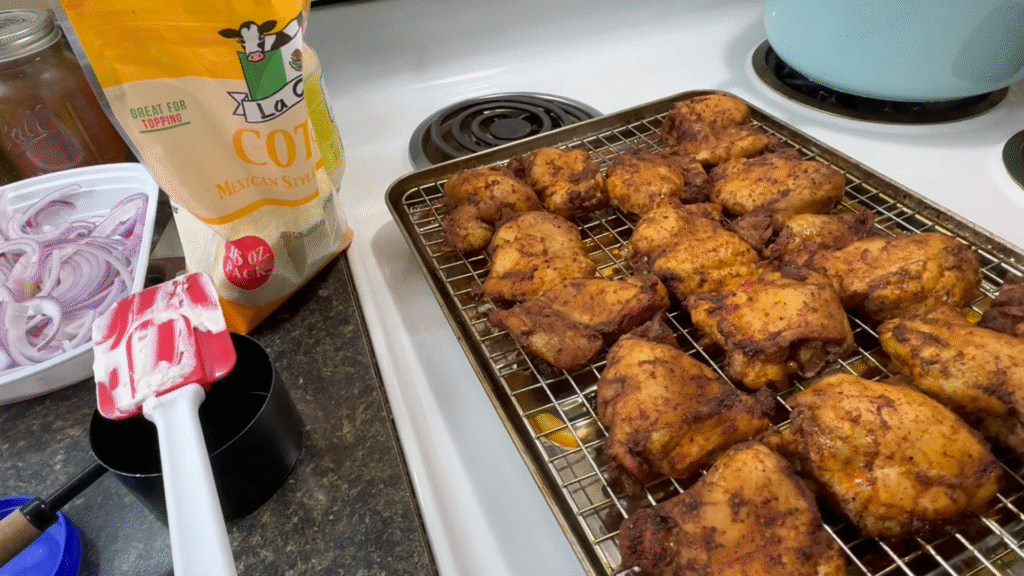 - Chicken breast or thighs – Seasoned and cooked until juicy.