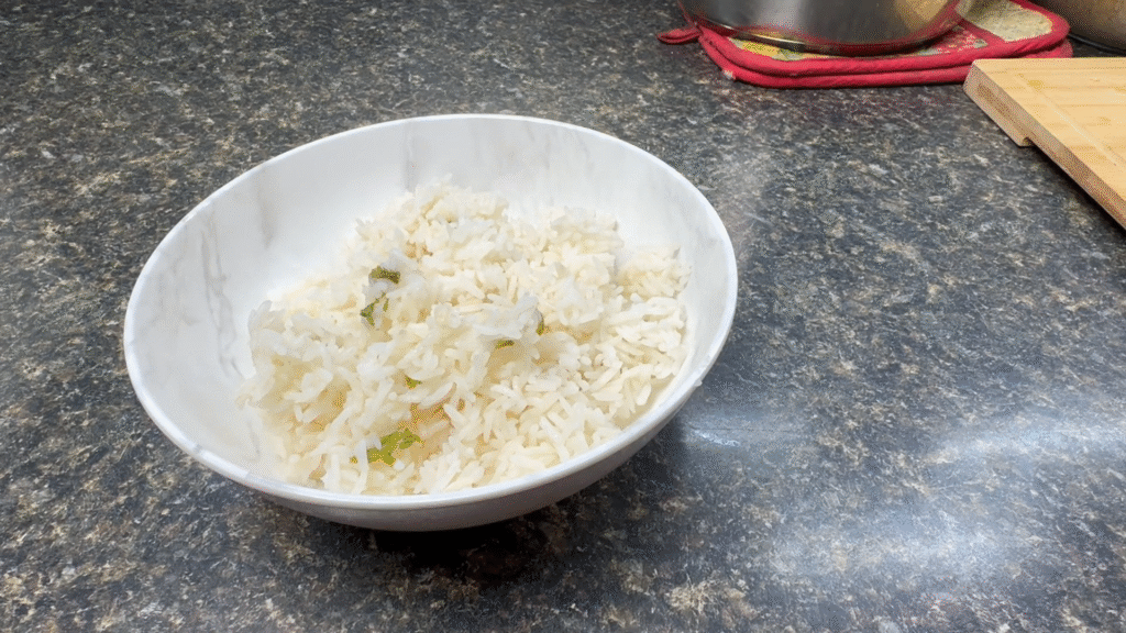 Cook your rice as usual. I love adding a little lime juice and chopped cilantro for extra flavor.