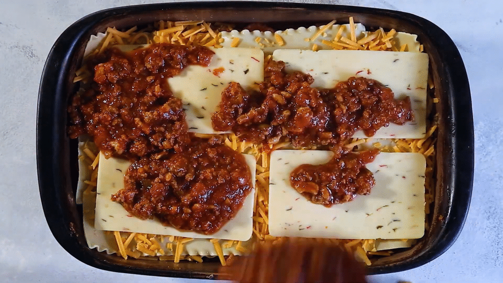 It’s baked just like lasagna, so you get melty cheese on top, gooey layers inside, and bold taco flavors in every bite.