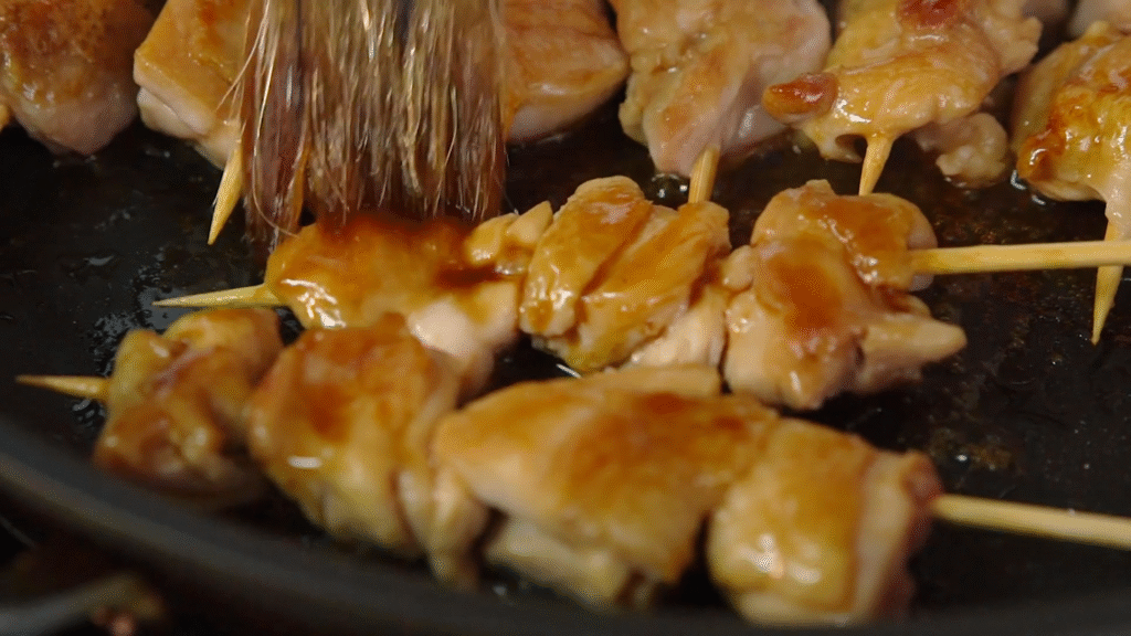 While grilling, brush more teriyaki sauce on the skewers. This makes them sticky, shiny, and packed with flavor.