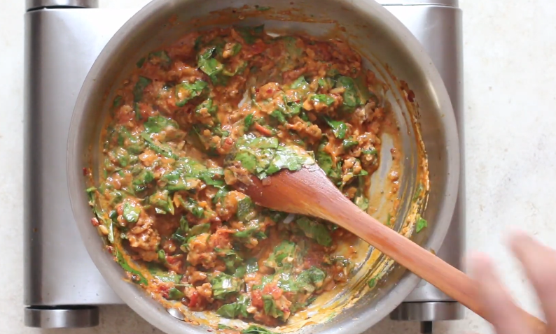 - Brown sausage: In a skillet, heat olive oil. Add sausage, breaking into crumbles. Cook until browned. Add onion and garlic; sauté until softened. Season with Italian seasoning, salt, and pepper.